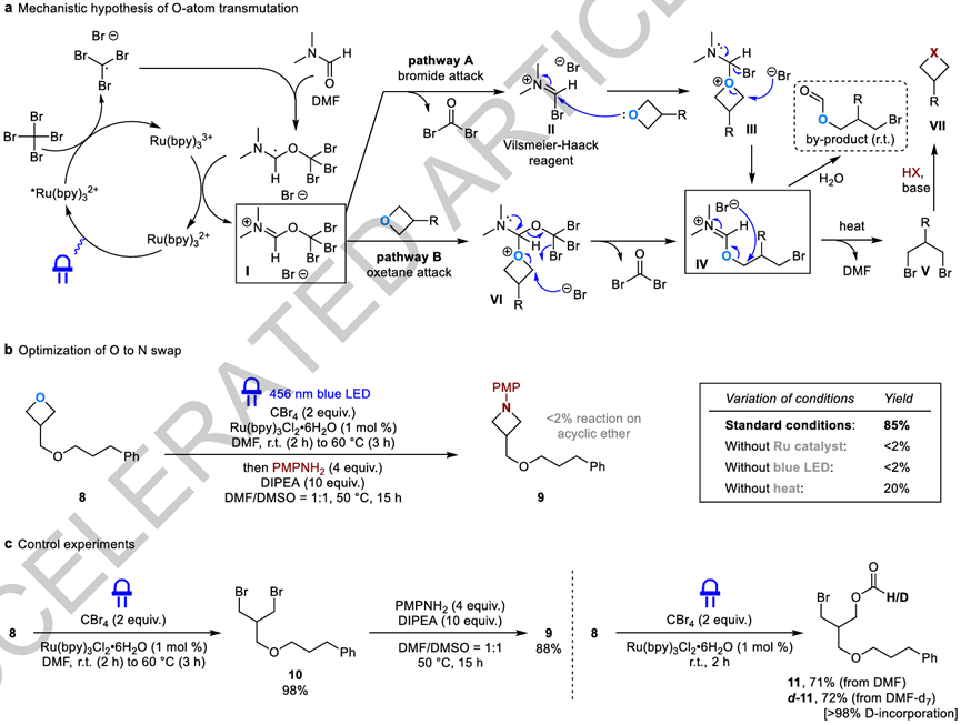 图2 光催化氧原子置换的反应机理假设与实验验证© 2025 Springer Nature