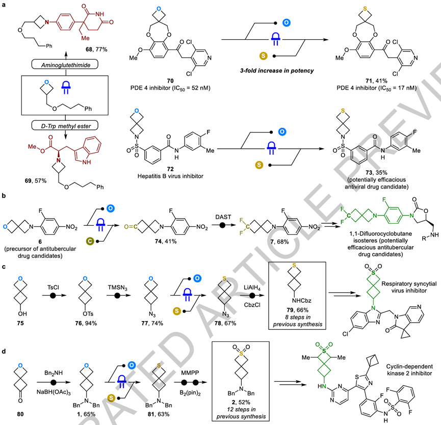 图1基于氧杂环丁烷中氧原子置换的合成策略及其在药物分子构建中的应用价值© 2025 Springer Nature
