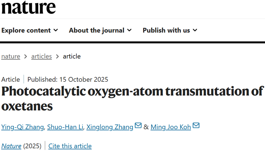 原文详情:Zhang, YQ., Li, SH., Zhang, X. et al. Photocatalytic oxygen-atom transmutation of oxetanes. Nature (2025). https://doi.org/10.1038/s41586-025-09723-3