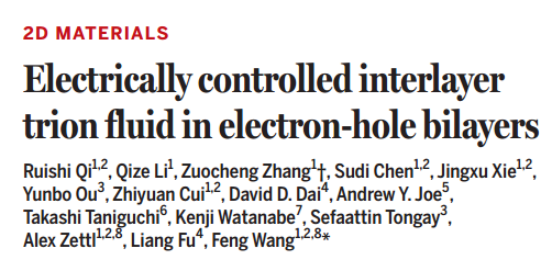 文献链接:Electrically controlled interlayer trion fluid in electron-hole bilayers,2025https://doi.org/10.1126/science.adn45)