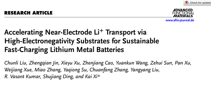 Accelerating Near-Electrode Li+ Transport via High-Electronegativity Substrates for Sustainable Fast-Charging Lithium Metal Batteries. Adv. Funct. Mater. 2025, e24392, https://doi.org/10.1002/adfm.202524392.