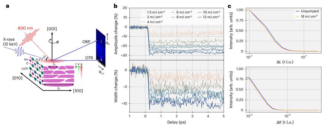 为了深入揭示表面与体相在超快过程中的不同角色,亟需一种能够区分表面与体相响应的实验手段。传统X射线衍射虽然能探测体相布拉格峰,但对表面敏感的信号却难以捕捉,导致对光诱导相变的解读往往依赖于“材料初始状态均匀”这一理想化假设。为此,柳学榕团队联合多个国际研究组,利用瑞士自由电子激光装置 SwissFEL,发展了一种基于表面敏感X射线散射的新方法,首次在实验上实现了对轨道序表面动力学的独立探测,从而揭示了光致轨道序熔化的真实过程——并非整体协同的相干畸变,而是始于表面、以无序为主导的局域瓦解。这一发现不仅挑战了过去对光控相变机制的认知,也为未来在异质结构中设计超快光控器件提供了新的物理基础。