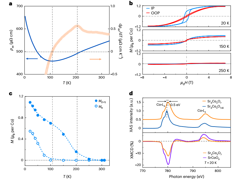 图2 Sr3Co2O7中的磁性和金属态;© Springer Nature Limited 2025