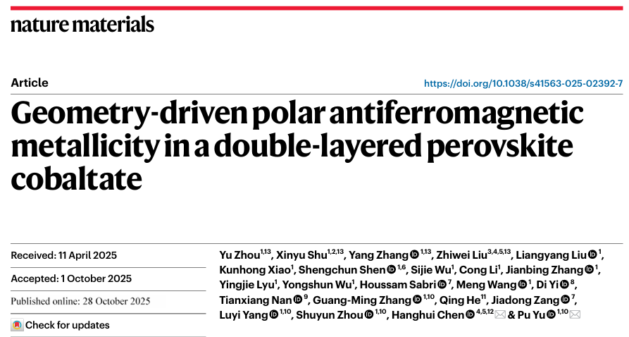 文献链接:Geometry-driven polar antiferromagnetic metallicity in a double-layered perovskite cobaltate,2025,https://doi.org/10.1038/s41563-025-02392-7)