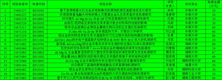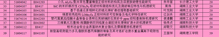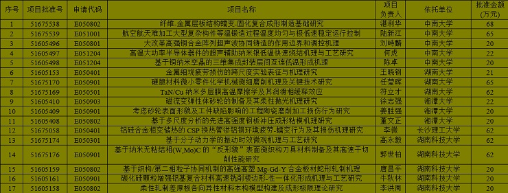 笔者作为在湘的材料人,对湖南所有本科院校(含民办)所获得国家自然科学基金中的材料类基金项目做了适当的统计和总结,基金项目均为E类工程与材料学部的,所辖E01金属材料、E02 无机非金属材料、E03有机高分子材料全部以及E04 冶金与矿业和E05机械工程中的材料类基金项目。