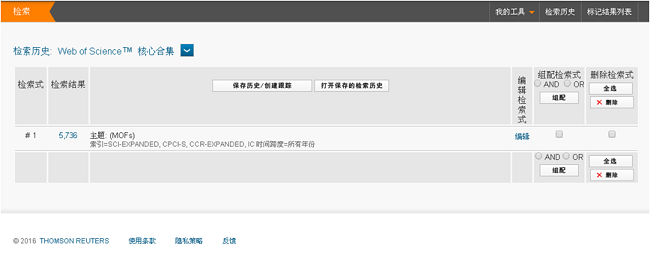 Step 3:保存检索历史,(金属-有机框架为例)