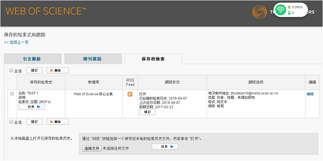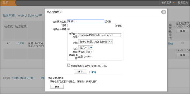 保存检索历史,以便设置检索式组合跟踪