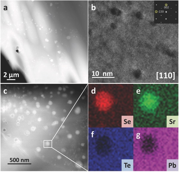 (d-g) 分别为Se/Sr/Te/Pb的光谱图,反映出材料中的Sr和Se富沉积。