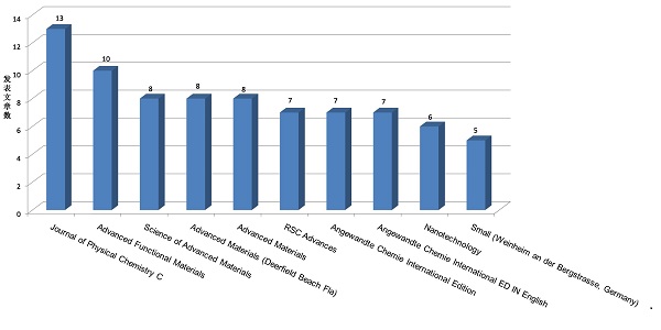可以看出,在发文数量排名前十的期刊中,影响因子在10以上的期刊Advanced Functional Materials、Advanced Materials、Angewandte Chemie International Edition的发文总数占到了排名前十期刊发文总数的三分之一,这说明曾教授及其团队的研究成果得到了国际同行的极大认可,发表在这些顶级期刊的文章能够更快地促进相关领域研究的深入和发展。