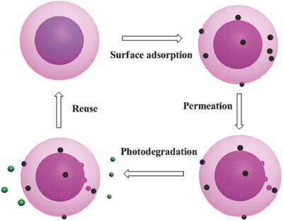 图8 核壳结构聚合物半导体光催化剂连续吸附催化过程示意图