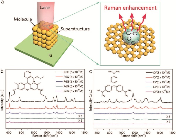 (a)利用单一Cu2O超结构探测目标分子的SERS示意图