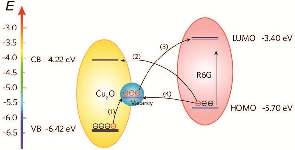 示意图1 在647nm光照下Cu2O和R6G之间光致电荷转移过程