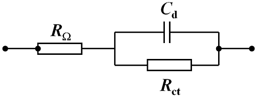 如果电极过程由电荷传递过程(电化学反应步骤)控制,扩散过程引起的阻抗可以忽略,则电化学系统的等效电路可简化为: