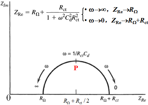从Nyquist 图上可以直接求出Rω和Rct,Zre= RΩ+Rct/2