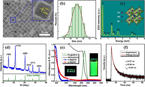 图1.全无机钙钛矿量子点表征图