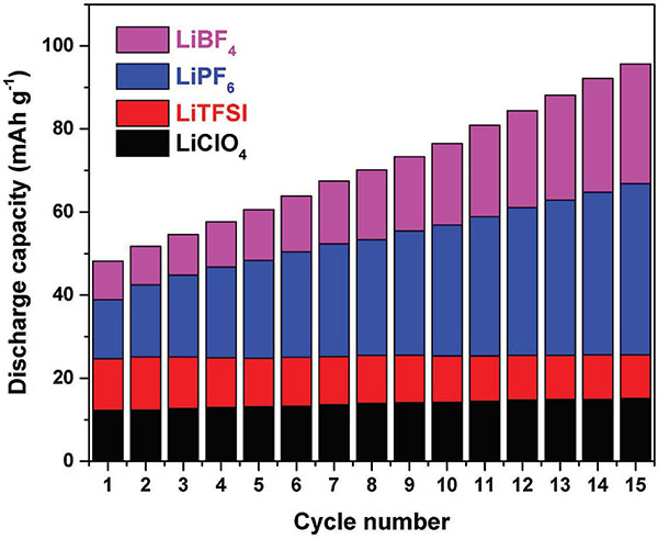 电解液分别为LiBF6 LiPF6 LiTFSI LiClO4