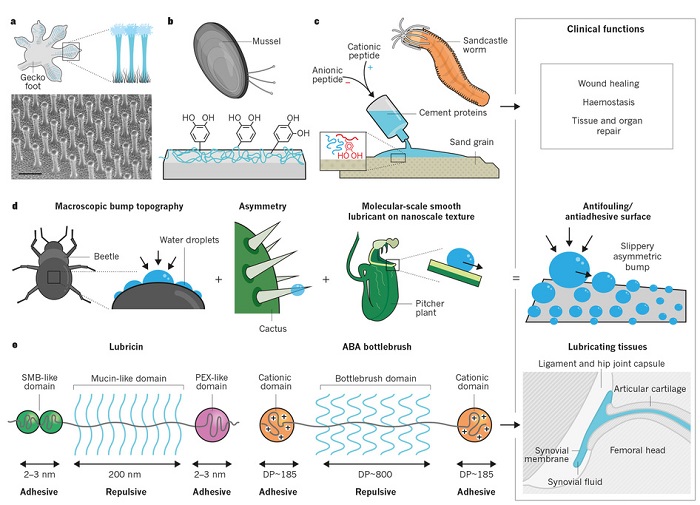 通过模仿自然,大量的仿生材料不断地冲击着我们的想象力。随着人们对生物学的理解和工程能力的发展,生物材料可以同时具备更加复杂的化学生物特性来实现具体的治疗效果。其中,通过模仿生物界面组织来设计聚合物从而实现治疗具有十分重要的意义。