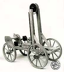 1807年瑞士的Francois Isaac de Rivaz设计了第一个在汽车内部工作的内燃机。这个实验模型由氢气和氧气提供动力。Rivaz汽车将压缩的氢气储存在气球中,并带有伏特电池点火装置。