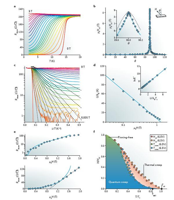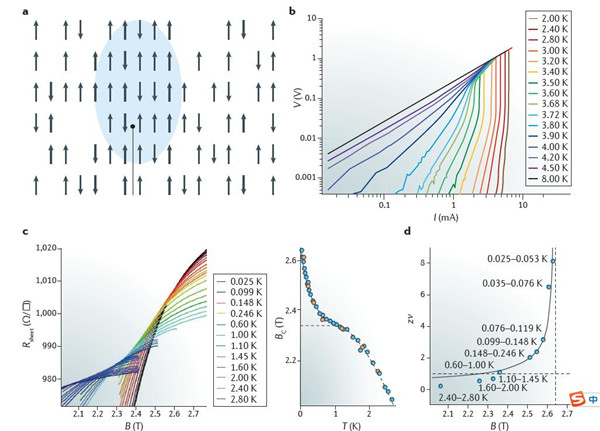 二维超导材料具有很多有趣的性质,例如电子或/和库珀对的定域性、由于量子尺寸效应引起的转变温度震荡、源于超导性波动的过导性、Berezinskii-Kosterlitz-Thouless(BKT)转变和零度时的量子相变(QPTs)等。尤其对于BKT转变来说,从非成对的漩涡-反漩涡到漩涡-反漩涡对的转变可以作为二维超导性转变存在的证据。在电流-电压特性曲线的零电流限处会出现BKT转变,且当欧姆电阻消失时其服从Halperin-Nelson标度率。
