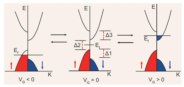 图3 通过栅极电场对双极磁性半导体载流子的自旋方向进行调控