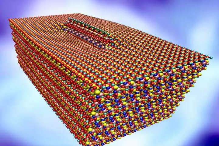 螺型位错打乱了雪硅钙石(天然形成、类似于水泥的成分水化硅酸钙的结晶质)中的原子排布。莱斯大学的科学家们通过雪硅钙石的模拟来研究位错如何缓解材料所受压力。