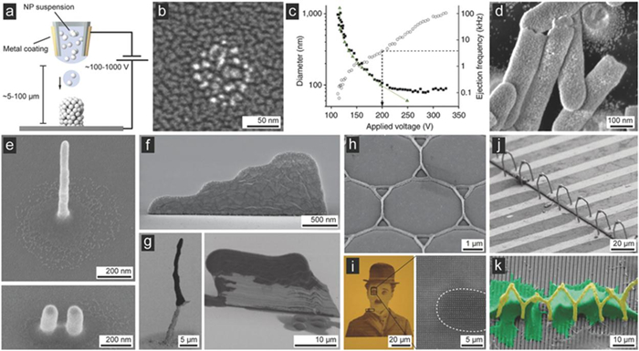 (a) 原理:通过电流体的动力来驱动喷射纳米颗粒墨水中的亚微米尺度液滴;