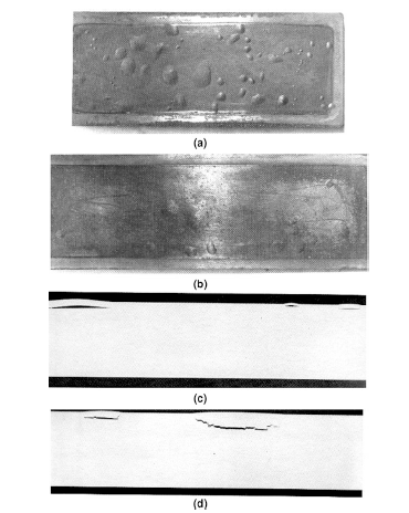 图 2 两平板试件发生氢蚀现象:a)b)俯视图;c)d)横截面图