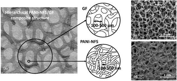 图7 三维分级多孔聚苯胺纳米纤维海绵/石墨烯泡沫复合电极的示意图