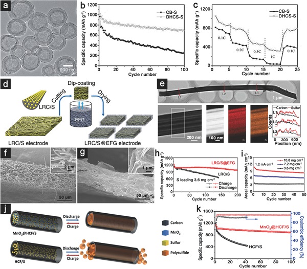 具备高能量密度的锂硫电池被认为是颇具前景的下一代蓄能系统。但是离子/电子电导率差、多硫化合物存在穿梭效应(shuttle effect)等问题一直阻碍着锂硫电池的发展。自从有研究发现有序介孔碳对硫的吸收可以显著提高电池容量以来,大量研究表面介孔碳材料能够大幅增强锂硫电池的性能。而在所有碳材料中,中空碳纳米结构具有接触面积大、离子传输路径短等优点。然而,这些简单结构的非极性碳材料在电池工作过程中不能有效限制极性多硫化物的运动。相比较之下,异质原子掺杂以及利用复杂中空结构代替简单结构等策略则可以有效抑制多硫化物的运动。