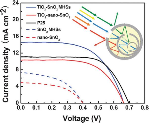 图11 基于不同空心结构的染料敏化太阳能电池的电流电压特性