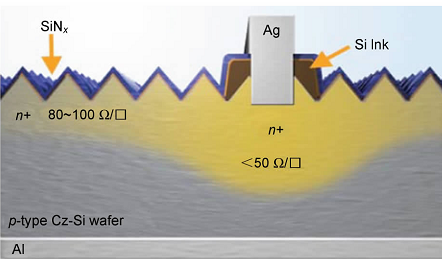 图5 硅纳米晶墨水作为电池局部点接触选择性发射极的示意图[8]