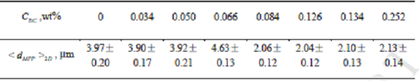 表1.在含不同TiC颗粒添加量的Al-9wt%Bi合金中的MPPs的平均粒径
