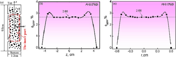 (b)MPPs沿AL-9.0wt%Bi合金试样Z轴方向所占含量分布曲线。