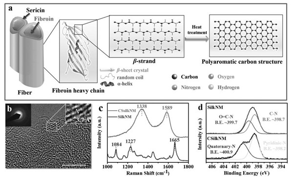 (a)天然蚕丝的结构图,其中β层在加热条件下可以转化成芳香族多碳环结构。