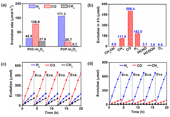 (a) Pt/C-In2O3和Pt/P-In2O3催化还原CO2的产物生成速率;