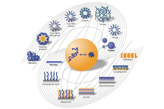 能作出刺激响应的聚合物材料的纳米“行星”结构,外界环境改变,微观结构也发生改变