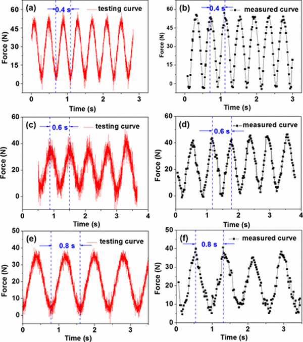 图5. 智能触觉传感器在动态力传感下实际响应行为