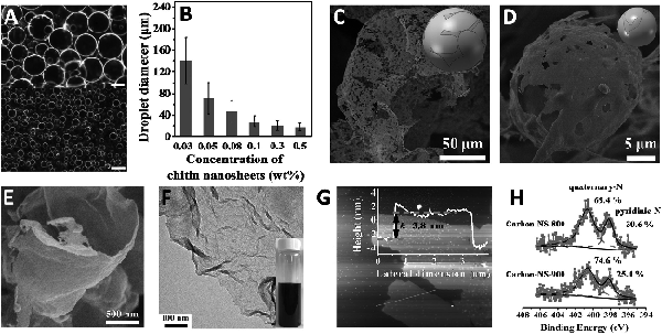 图3 甲壳素纳米片的皮克林乳化和碳化