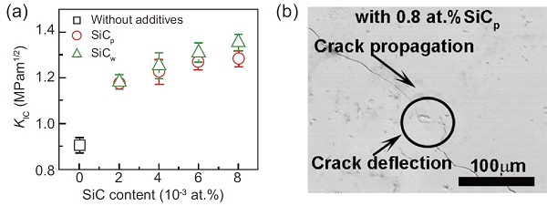 图5 具有分散SiC的Mg2.16(Si0.3Sn0.7)0.98Sb0.02材料的断裂韧性和裂纹扩展