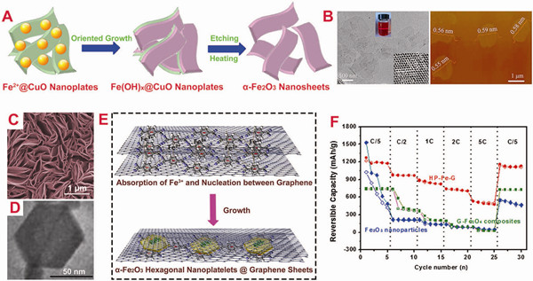 三氧化二铁纳米片的制备目前主要依靠“由下而上”法,作为锂离子电池来说,理论比电容约为1006 mA h g-1 但目前循环性能依然难以让人满意。