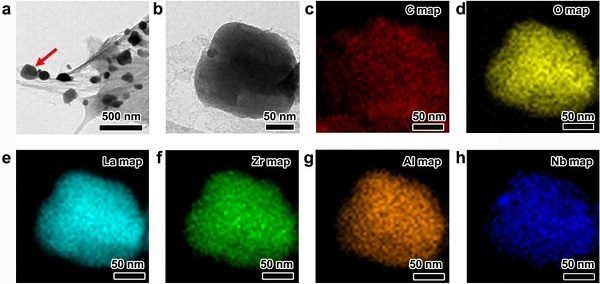 (c-h)C,O,La,Zr,Al和Nb的元素图