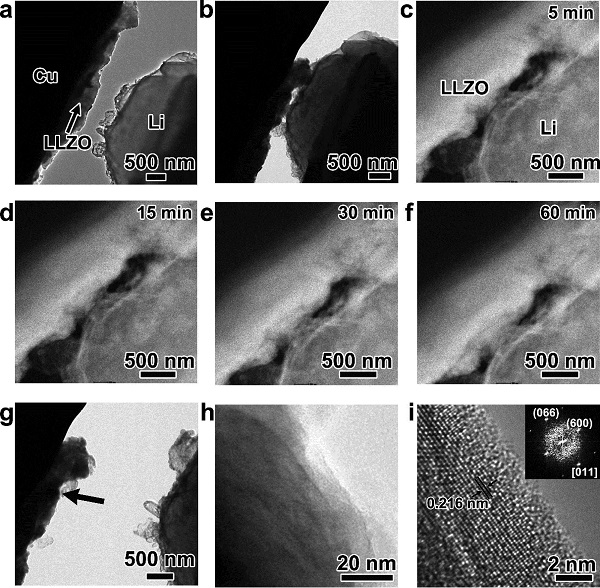 图4 LLZO与Li金属负极稳定性的原位TEM研究