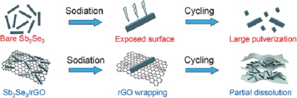 图6. Sb2Se3/rGO电极长期循环过程示意图