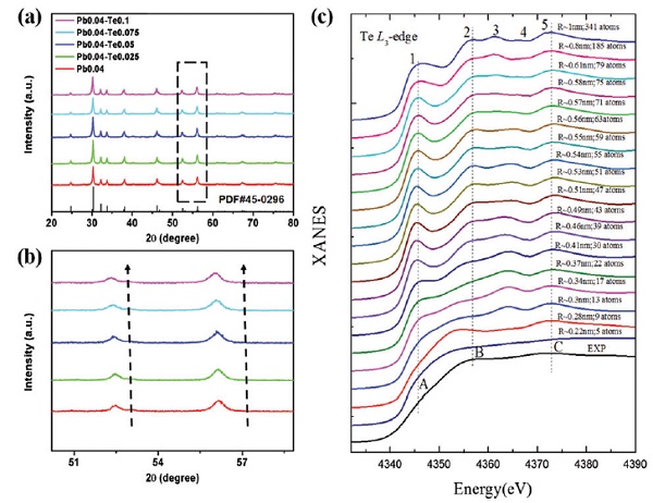(a) Te/Pb共掺杂的BiCuSeO样品XRD图谱。
