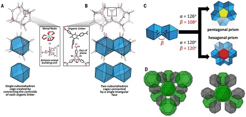 图2:在介孔MOF即NU-1301中的立方体结构形成超晶格上层结构的排列