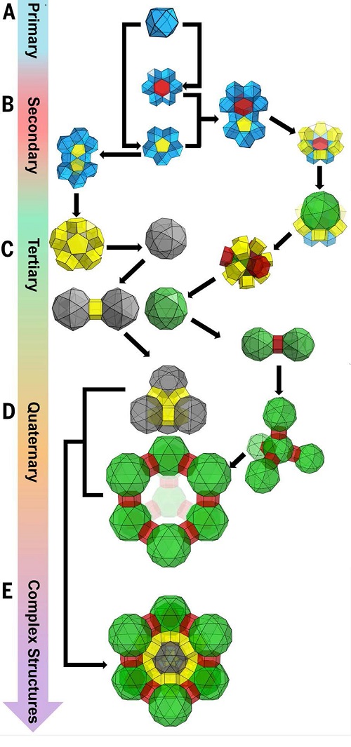 多重的蛋白质链天然自发组装成巨大的、精确的、复杂的功能二级、三级、四级结构。这激发科学家研究“可折叠”与“自组装”的机理。晶体工程使得化学家模拟类病毒的多面体结构。长期存在的挑战是从简单的结构单元自下而上的构建高度复杂的结构。而这个挑战的攻克在科学家的不断探索下似乎上升了一个新的台阶。