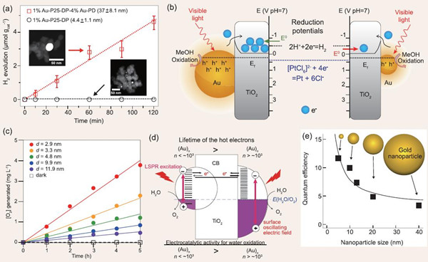 对于MIP体系来说,金属纳米颗粒的性质通常在光催化性能中扮演着重要的角色。颗粒尺寸就是关键因素之一。尽管还未达成一致,但是越来越多的研究者已经开始关注颗粒尺寸对金属诱导的可见光光催化的影响。然而,尽管已经报道了很多工作,但目前对这一问题还没有令人满意的结论。这也说明金属的颗粒尺寸对于MIP体系的影响比预期的更为复杂。为了解决这一问题,应该更多地关注区分纳米颗粒在MIP系统中扮演的不同角色。