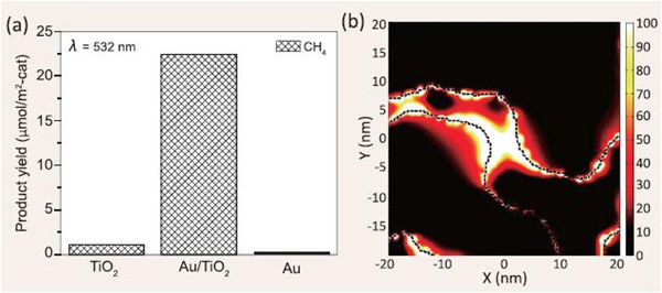 图5 不同光催化剂的产率和Au–TiO2的电场强度