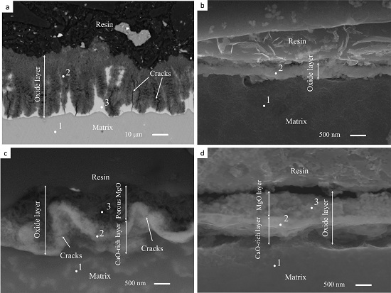 (c)CaO / MgO复合层形成在致密的MgO层之下,提供额外的抗氧化性保护。