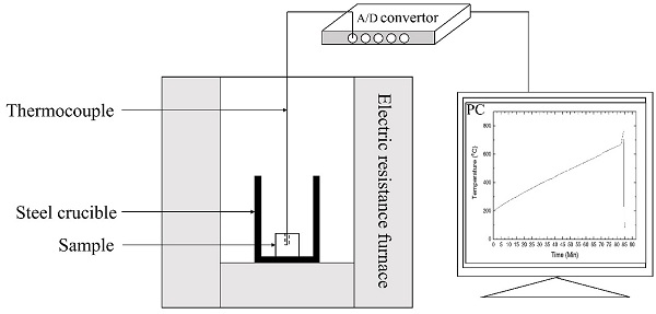 将样品置于具有线性升温的顶开式电阻炉中的坩埚中加热,通过样品温度的急剧增加来确定着火温度。
